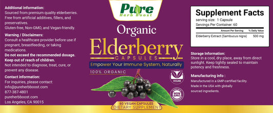 Organic Elderberry Capsules Immune Support (60 Vegan Capsules) – Natural Antioxidant & Immunity Booster